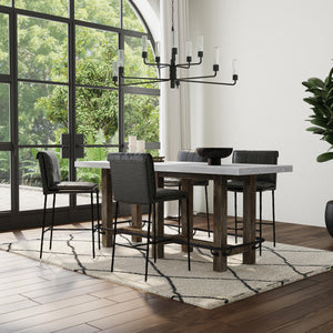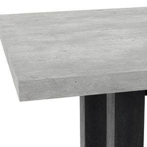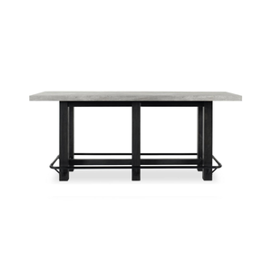 The Ojai Counter Table combines the natural beauty of mango wood and the sleek durability of concrete laminate. Designed for both style and practicality, it features a convenient iron foot rail for added comfort. Its blend of industrial, brutalist elements with organic wood creates a striking, modern aesthetic, making it a perfect addition to your kitchen or dining area, offering both functionality and visual impact.