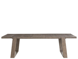 The Dwell Latte Dining Table stands out with its modern, architectural design, featuring integrated legs and a sleek sled base, all finished in a warm Dwell Latte medium-brown. Crafted with short grain banding along the edges, this table brings a refined, clean silhouette to your dining space, perfect for both everyday meals and elegant gatherings.