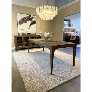 The Huntington Bay 84" Rectangular Dining Table combines versatile seating with refined oak construction. The table measures 66 x 36¼" and extends to 84 x 36¼" with one 18" leaf, accommodating six guests comfortably without the leaf and eight with it inserted. Crafted from oak solids and random-matched veneers, it features two pairs of glass-front doors concealing four adjustable shelves for elegant storage. Integrated LED lighting showcases your finest pieces, while tip-restraining hardware ensures stability. An exceptional choice for those seeking both entertaining flexibility and sophisticated display capability.