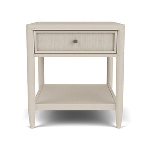 The White Sand 22" End Table exemplifies coastal sophistication through thoughtful construction and design. Built from select hardwoods and oak veneers, this piece features elegant tapered legs and natural sea grass detailing that harmonize with the luminous White Sands finish. A single drawer with ball bearing guides provides discreet storage, while an open display shelf offers space to showcase decorative accents or essential items. At 22 inches, this versatile table anchors living rooms and bedrooms alike, delivering both aesthetic appeal and functional versatility for those seeking refined coastal-inspired furnishings.