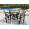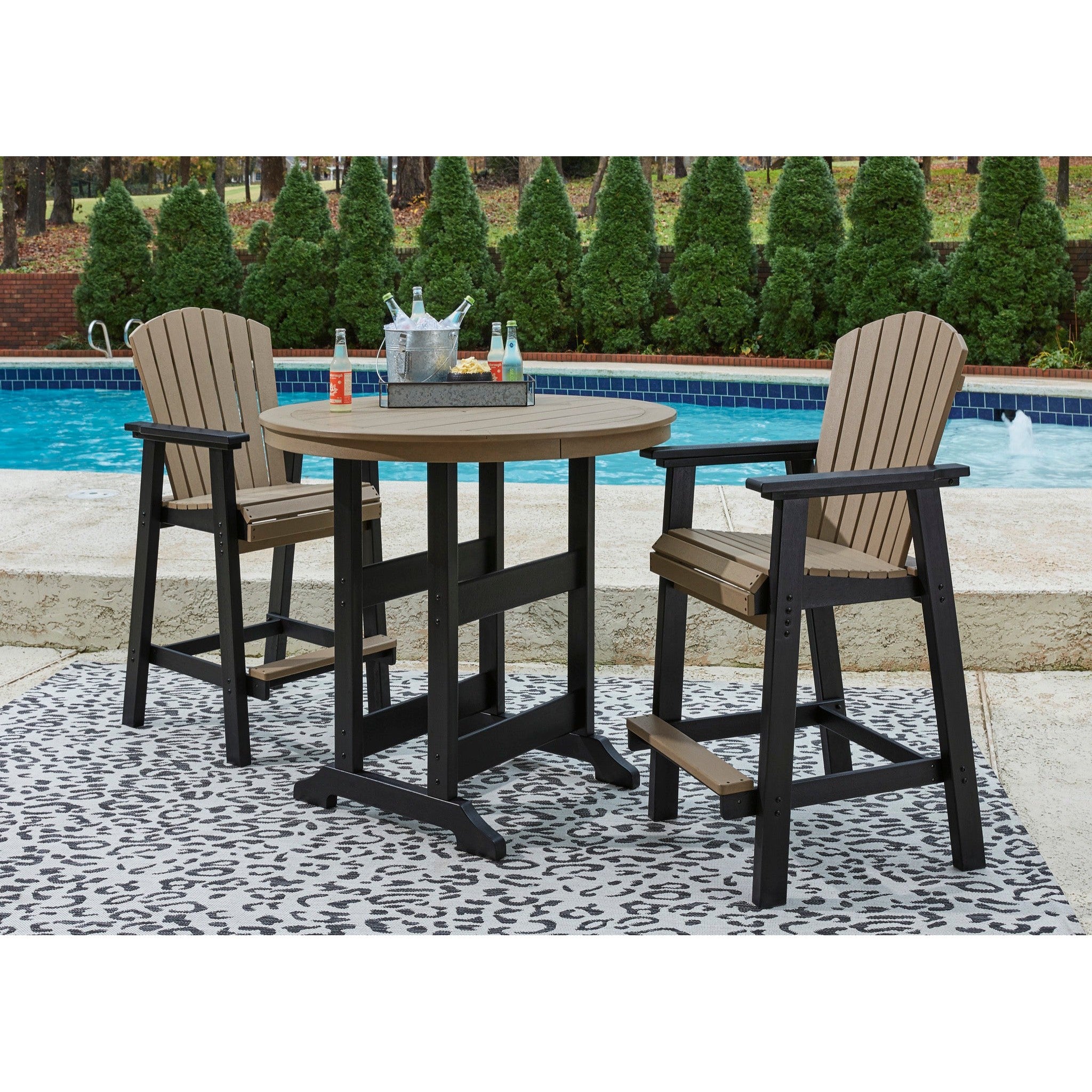 Raise the bar on outdoor living with this 46" round bar table with umbrella hole. Crafted for style, comfort and durability, this outdoor entertainment table caters with a standout two-tone finish that pairs a light driftwood-look and black finish for twice the interest. Round table design keeps everyone in the flow of conversation.