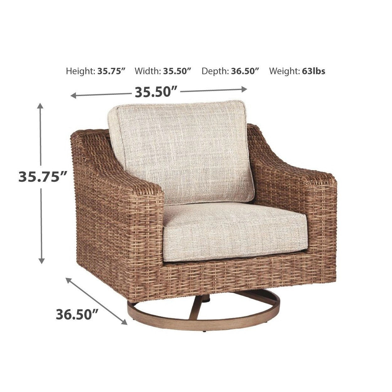 Product Description: Welcome to the ultimate in outdoor relaxation - the Fire Island Swivel Chair. This beautifully designed swivel chair is the perfect addition to any outdoor space, combining comfort, style, and functionality in a way that will transform your patio or garden into a haven of leisure.