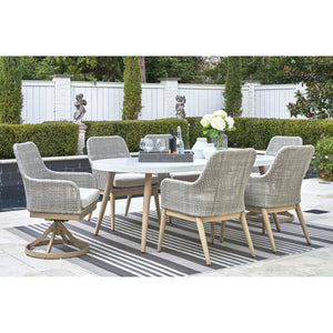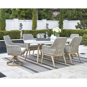 7-Piece Set Includes: 80" Oval Table + 4 Arm Chairs + 2 Swivel Arm Chairs