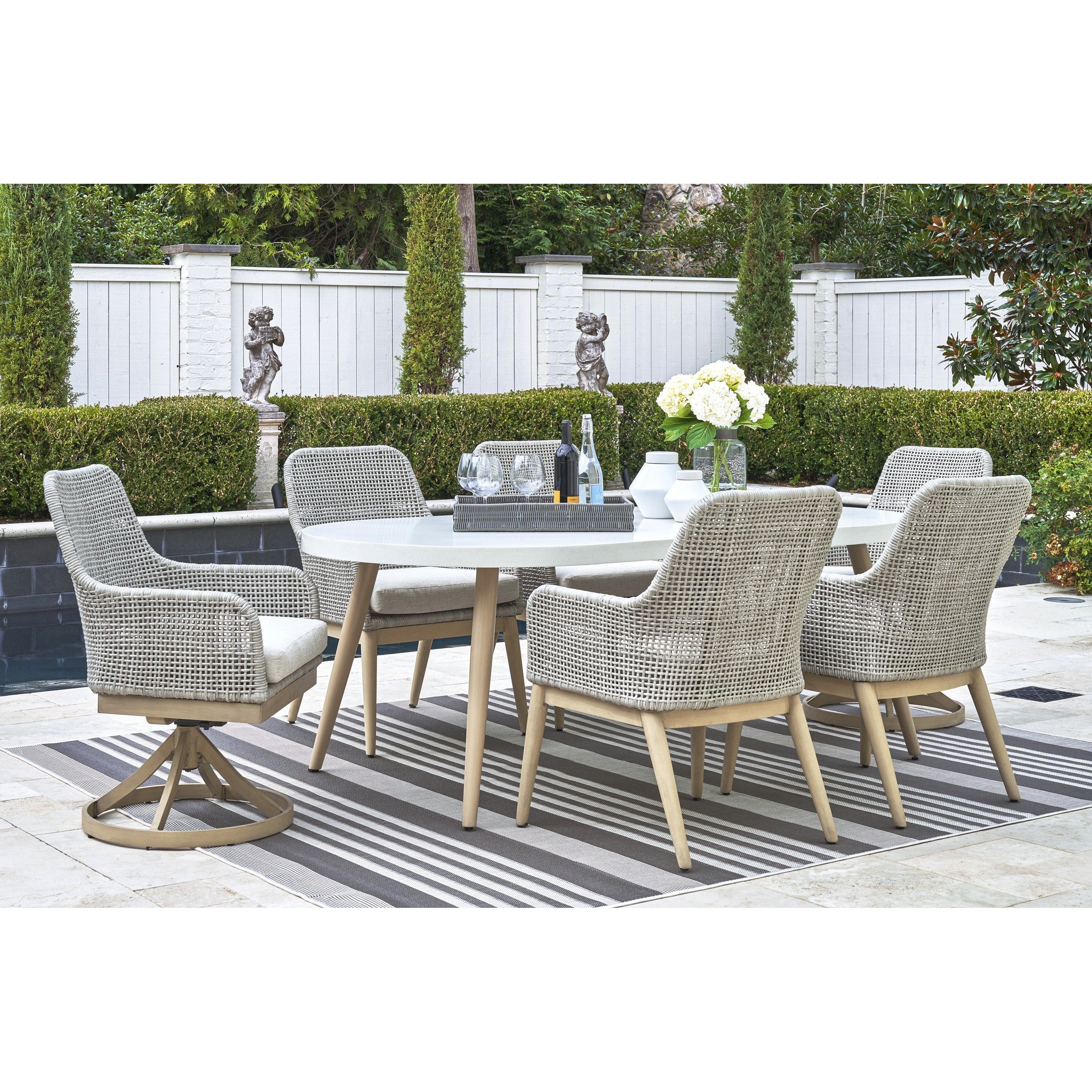 Low Maintenance Needs: This collection is as practical as it is stylish, requiring minimal upkeep to maintain its elegant appearance, leaving you more time to enjoy alfresco dining.