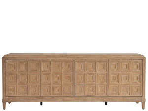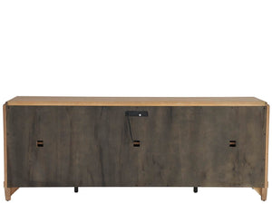 The Canyon Entertainmentainment Credenza is a stunning blend of form and function. Its warm wood finish and intricately carved details create a sophisticated and timeless look. The ample storage space and cable management system make it a practical and stylish addition to any living