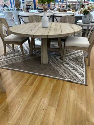 Create a stunning focal point on your patio with the Saratoga Teak Dining Table. The unique, glass-reinforced concrete tabletop adds a modern touch, while the warm weathered teak finish of the base brings a natural element to your outdoor dining space. This conversation-starting table offers ample space for dining and entertaining, while the umbrella hole and included cover provide added functionality.
