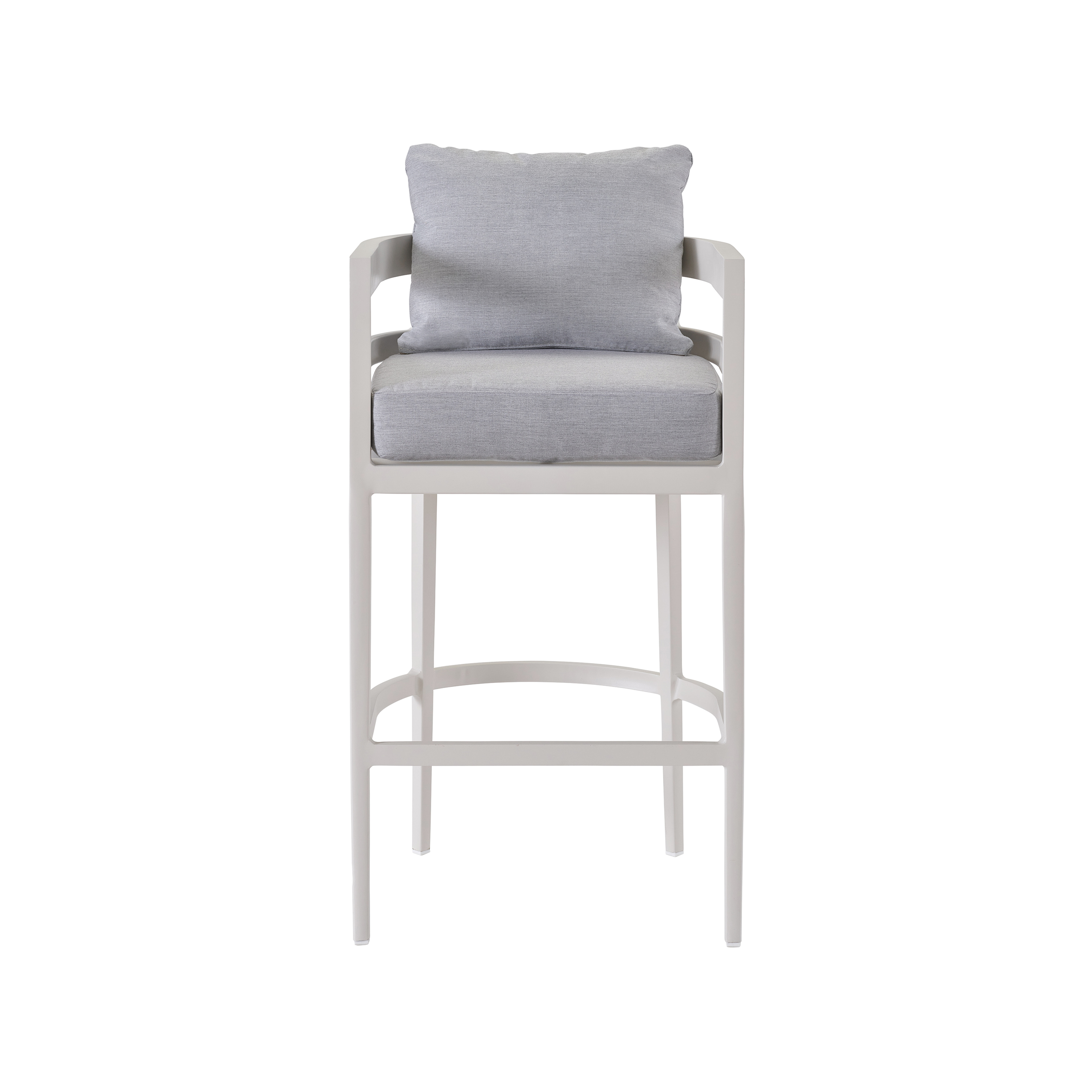 Modernize bar tables and countertops with the breezy South Beach Bar Chair, designed with a tall body, gentle curvature, inviting light grey cushions and a clean white finish. Durable construction meets gorgeous design with this outdoor seating made to withstand the elements for years to come. The comfort seat cushions contain a 1.8 density Antimicrobial foam to keep our cushions from developing mold or mildew. Each cushion is wrapped in a 2oz dacron fiber wrap to provide additional comfort. Our seat cushions have sonic seals on the edges and bagged in a water-resistant ticking to keep moisture out. Combined with the water-resistant properties found in our outdoor performance fabric offering, the Coastal Living outdoor cushions will perform great in the rain or with a wet swimsuit. This ultimately provides indoor living room comfort for your outdoor living space.