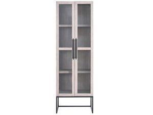 The Dwell Glacier Display Cabinet combines modern lines with functional elegance. Finished in a light and airy Dwell Glacier, its glass doors and adjustable wood shelves offer a stylish way to showcase your favorite items. The sleek metal base adds an industrial touch, creating a versatile piece that complements any living or dining space with its blend of open and closed storage.