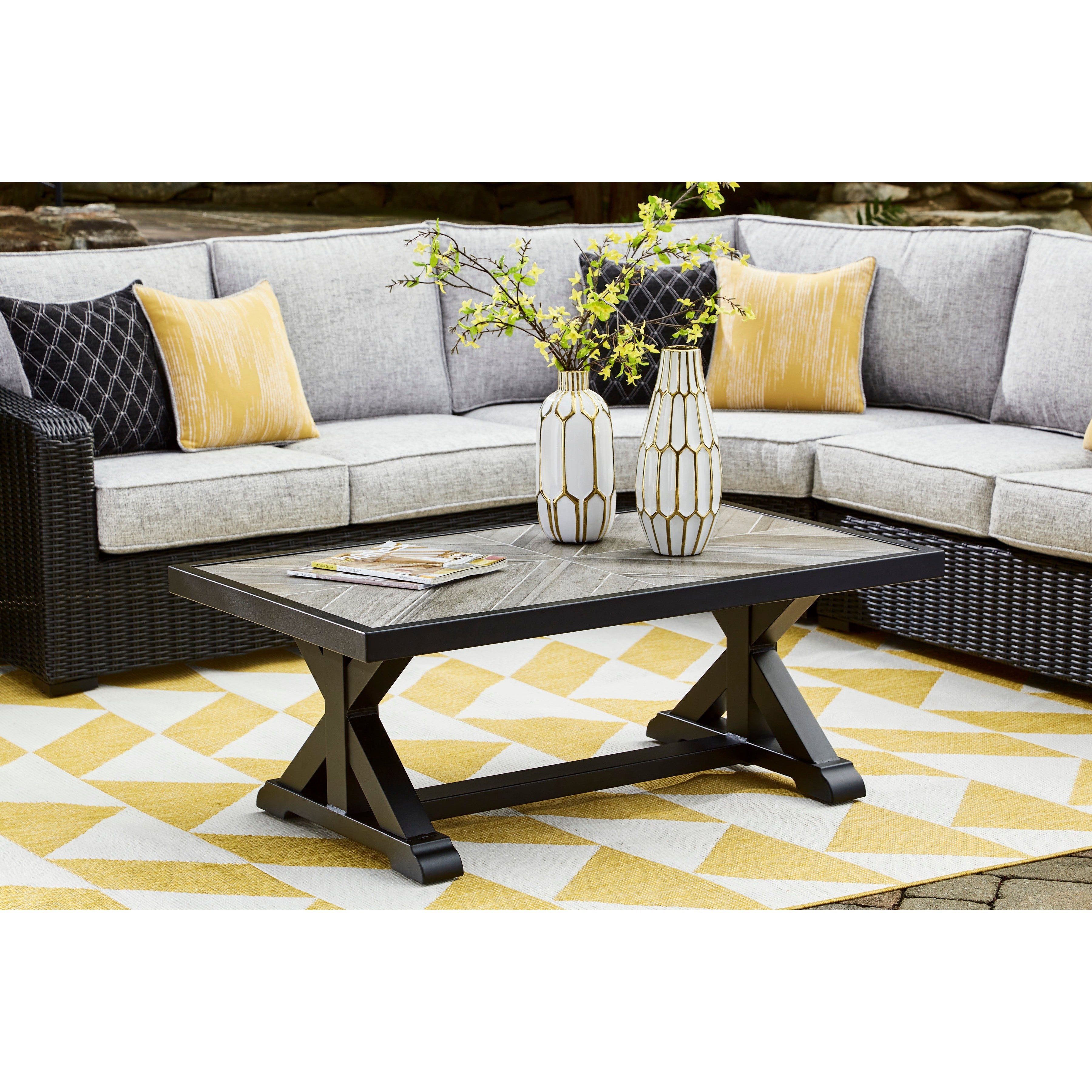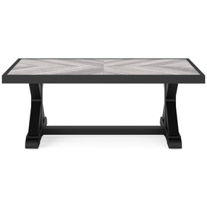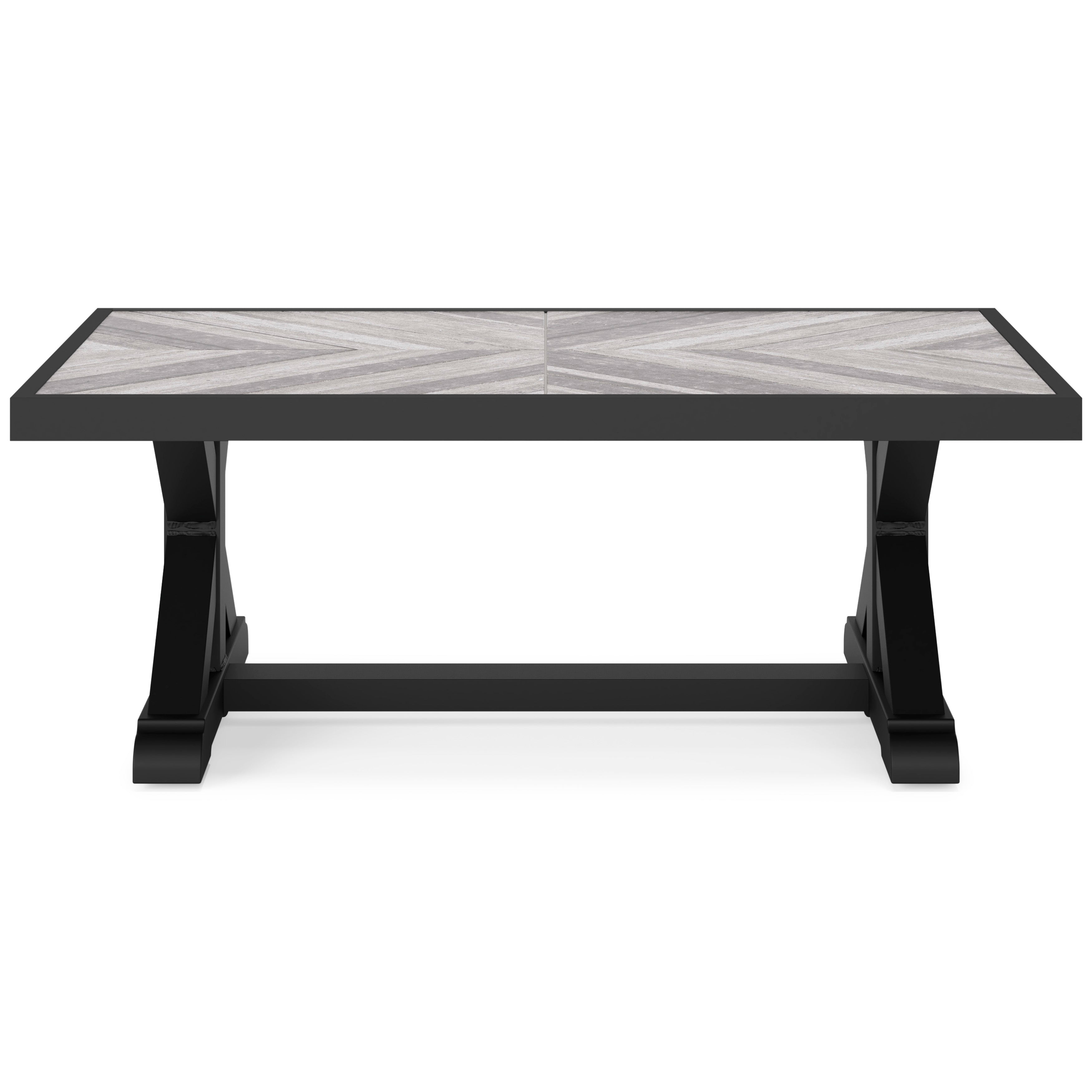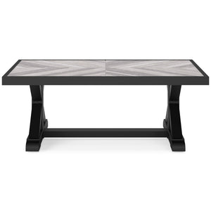 Sporting an easy-on-the-eyes elegance, this coffee table elevates the art of alfresco living. Beautiful and durable enough for indoor and outdoor use, this high-style/low-maintenance table charms with X-leg farmhouse styling. With a unique reverse diamond tile pattern, the thick porcelain tabletop provides unparalleled sophistication.