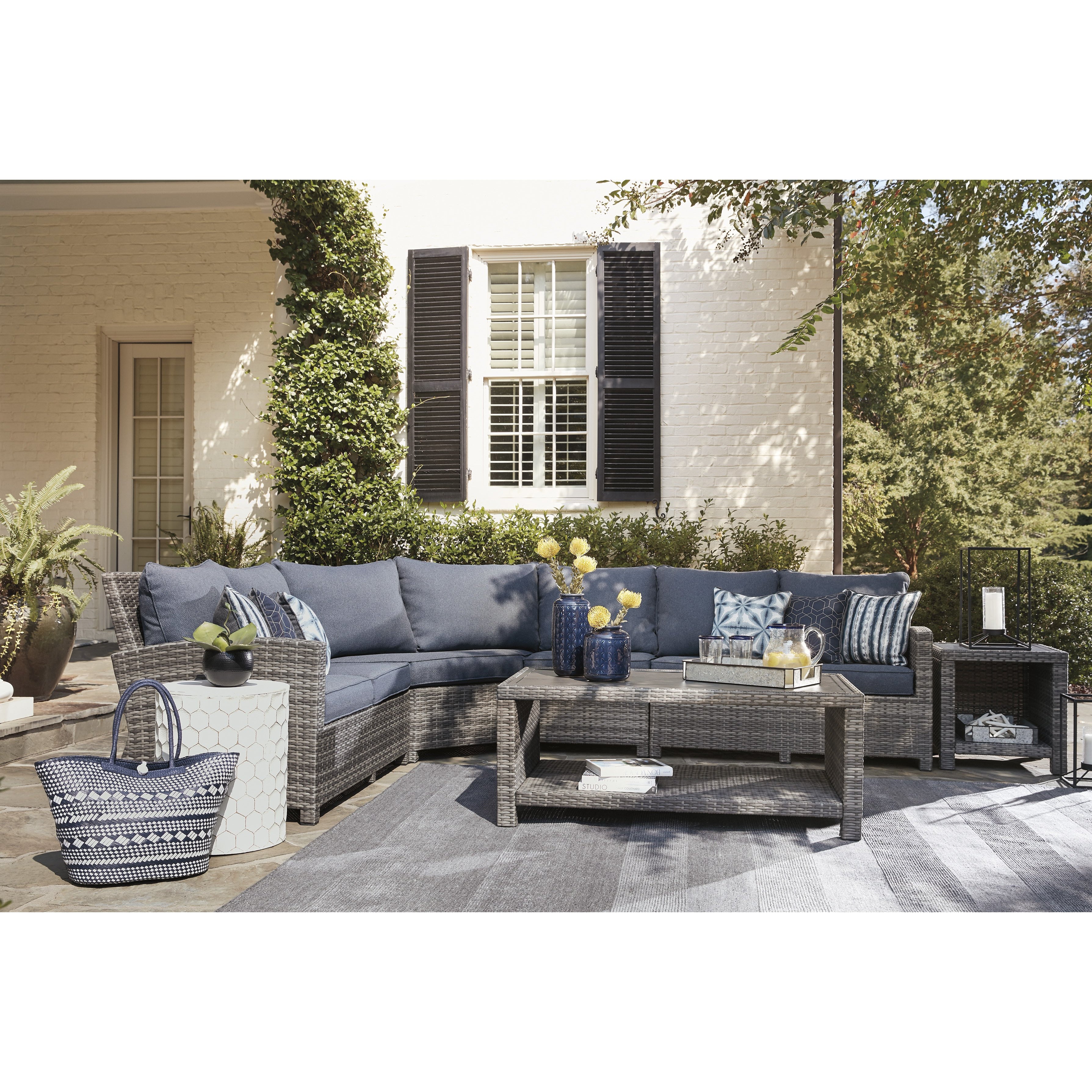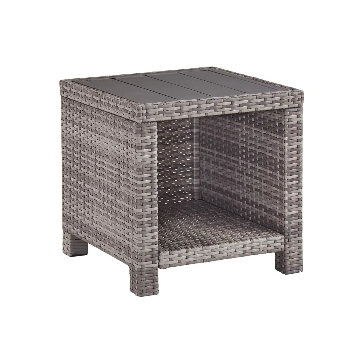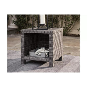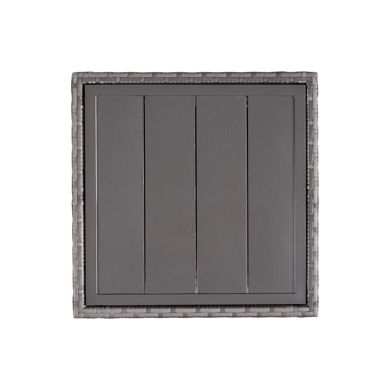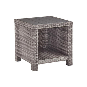 Bring a coastal cool vibe to your outdoor living space with the Nantucket Outdoor End Table. What looks like wicker is actually handwoven resin with a dreamy driftwood gray finish with all-weather protection. The concealed aluminum frame is powdercoated for seasons of carefree use.