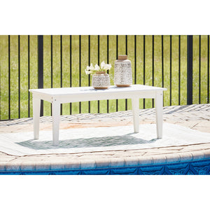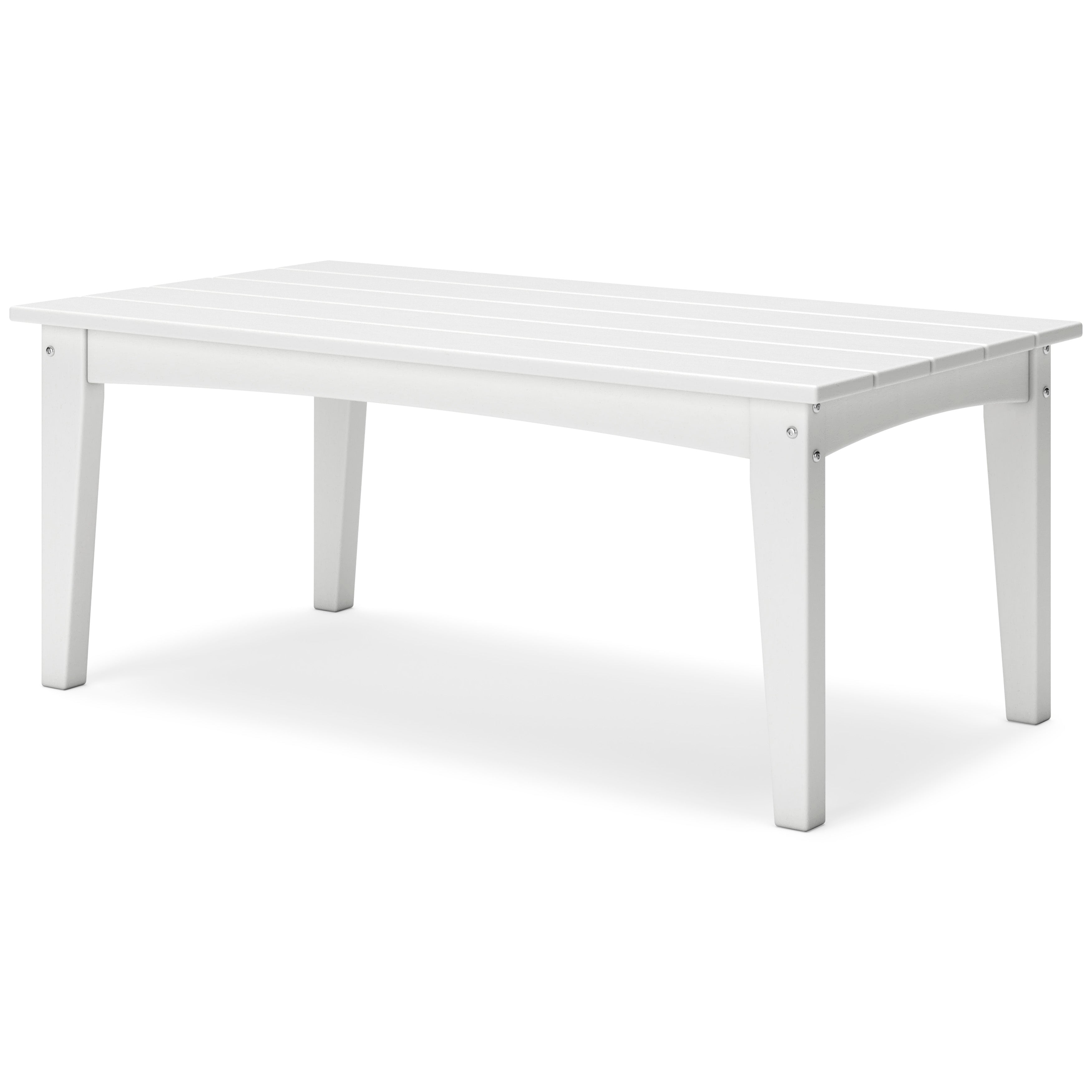 Drift into outdoor entertainment bliss with this coffee table. Dressed in a summery white for a casual feel, it weathers sunny summer days and cozy winter nights with durable HDPE material. When it comes to form and function, the table's rain-shedding slatted design simply goes with the flow. Use it to hold outdoor decor, drinks or snacks.
