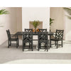 Rustic meets refined in the most stylish way with the Chippendale 7-Piece Farmhouse Dining Set. This all-weather set features a large, rectangular dining table with a thick, full-slatted tabletop and a sturdy pedestal-style base that allows for ample legroom. Your guests can enjoy many meals around this durable, stain-resistant table, and remain comfortable in the complementing dining chairs. These chairs have gently curved backrests that feature beautiful Chippendale-style designs and comfortably contoured seats, making every outdoor dining experience comfortable and memorable.