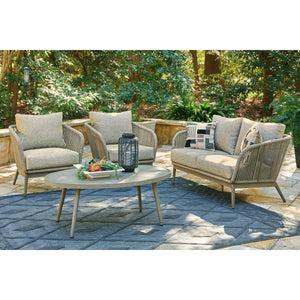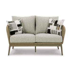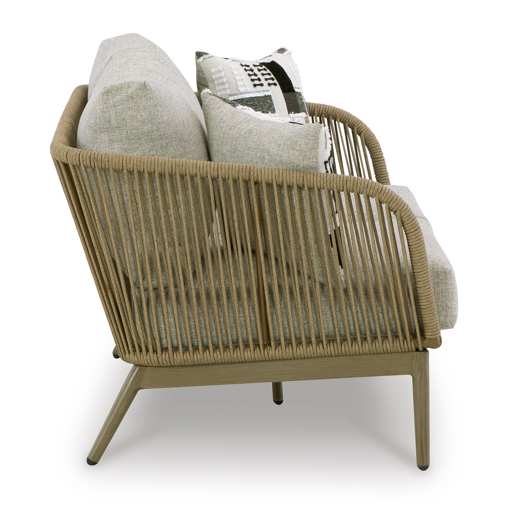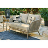 Effortless in its beauty, this outdoor loveseat echoes your easygoing sensibilities. Simply stunning in a brown wood-look finish paired with handwoven rope on a sturdy aluminum frame, it’s an ideal companion for relaxing poolside or hosting friends alfresco. And with high-performance beige Premium fabric, this loveseat makes stylish living a breeze.