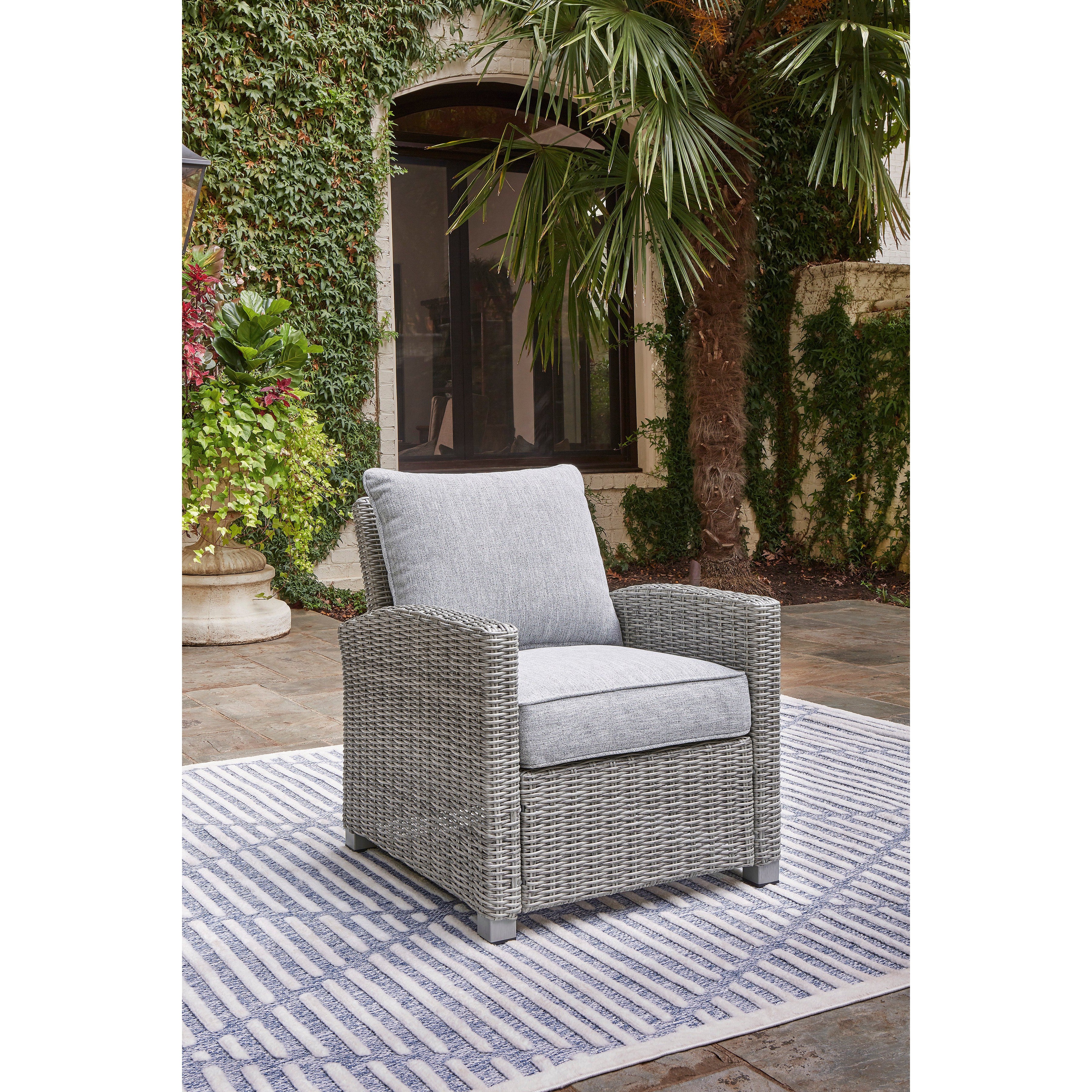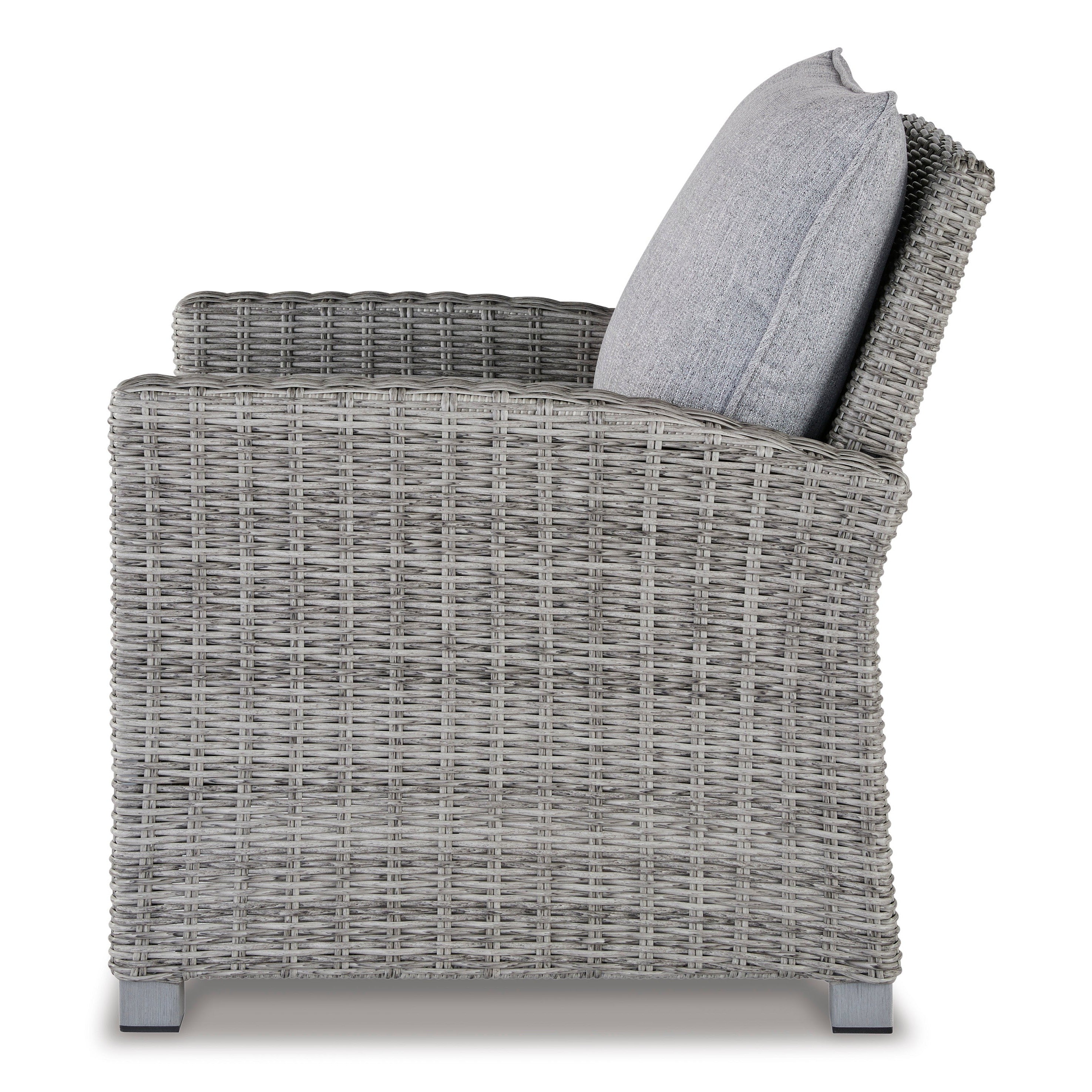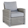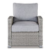 Indulge in backyard bliss. This outdoor lounge chair has a straightforward sense of style with its light gray resin wicker and wood-look finish. Gray high-performance fabric covers the cushioned seat and back, weathering the elements and keeping your aesthetic casually cool.