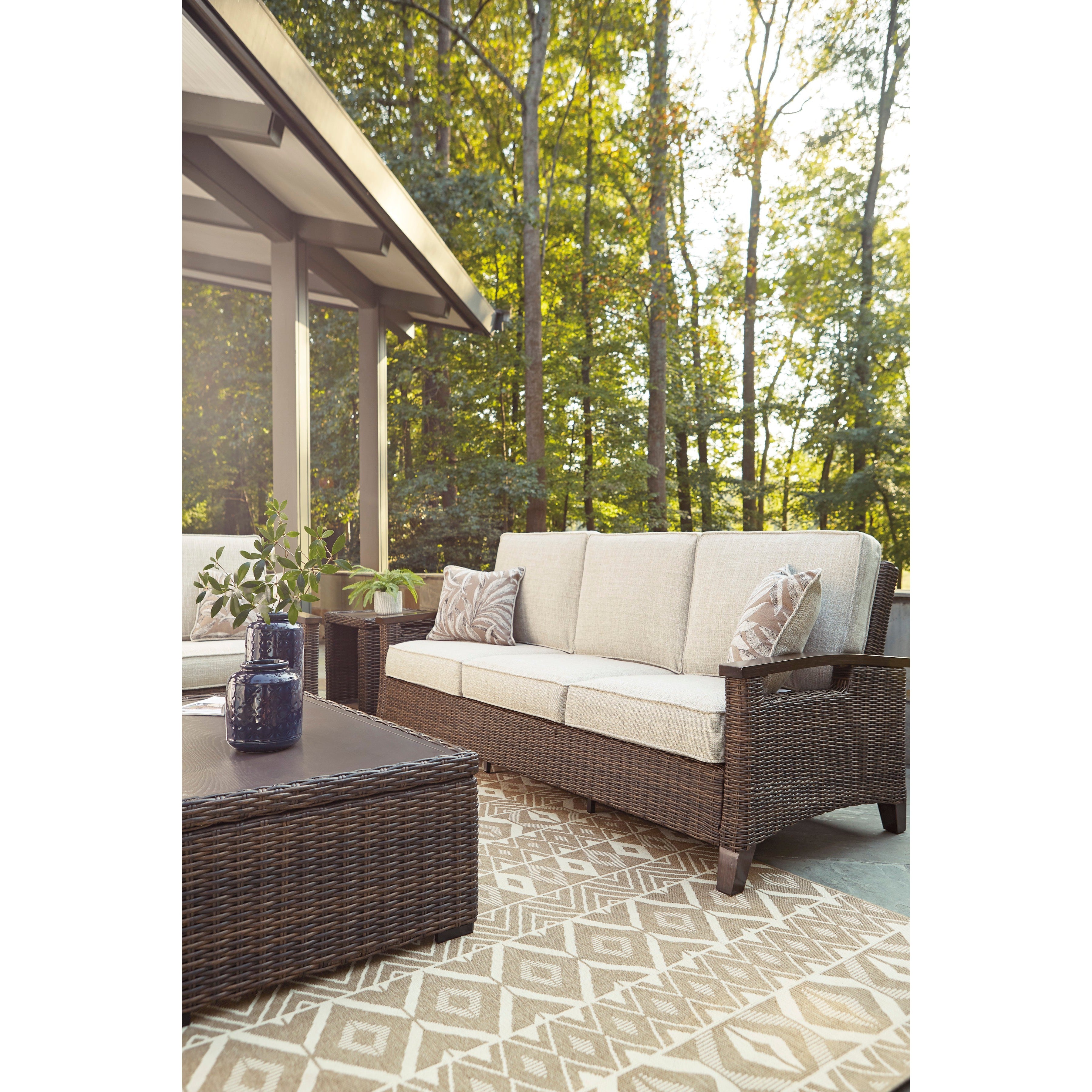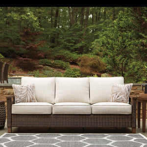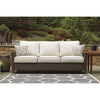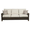 Pretty enough for trendy interiors, yet durable enough to weather the elements, the Sea Cliff Sofa rises to the challenge beautifully. Handwoven resin wicker over rust-proof aluminum merges high style with low maintenance. Rest assured, though the exposed armrests and feet look remarkably like wood, their sturdy aluminum construction is perfectly suited for al fresco living. Plush seat cushions and throw pillows wrapped in high-performing fabric aim to please.