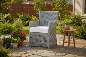 The Sand Point Outdoor Dining Chair instantly amplifies outdoor spaces with its cozy-chic aesthetic, showcasing a comfy white cushion encased within a woven flat rope body. Durable construction meets gorgeous design with this outdoor seating made to withstand the elements for years to come. The comfort seat cushions contain a 1.8 density Antimicrobial foam to keep our cushions from developing mold or mildew. Each cushion is wrapped in a 2oz dacron fiber wrap to provide additional comfort. Our seat cushions have sonic seals on the edges and bagged in a water-resistant ticking to keep moisture out. Combined with the water-resistant properties found in our outdoor performance fabric offering, the Coastal Living outdoor cushions will perform great in the rain or with a wet swimsuit. This ultimately provides indoor living room comfort for your outdoor living space.